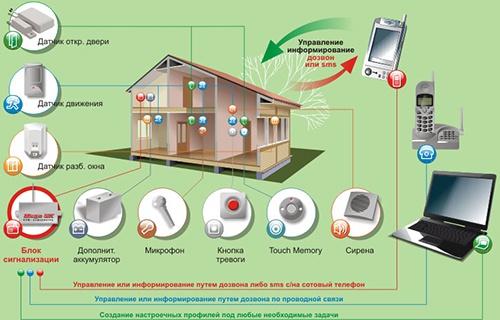 Наиболее удачным и самым современным устройством является GSM сигнализация, пригодная для активной защиты как дачи, так и любых других объектов. Она не только реагирует на попытку несанкционированного проникновения, но и незамедлительно сообщает об этом домовладельца.