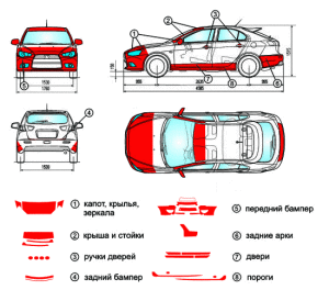 При этом следует учитывать его свойства, если пленка полимерная, то допустимо ее некоторое растяжение на округлых участках поверхности, в противном случае покрытие наносится на полностью ровный элемент корпуса авто.