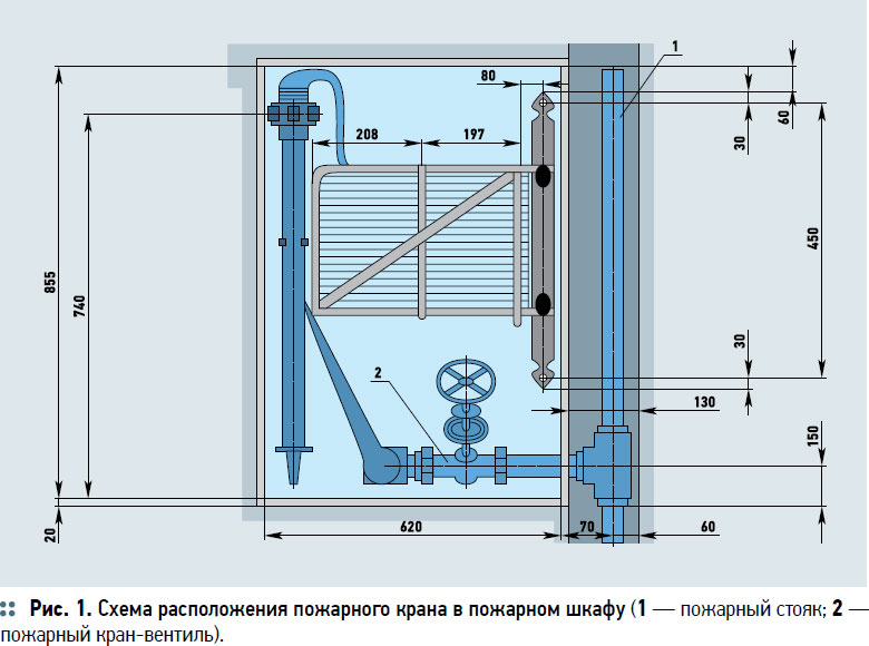 - Внутри них монтируют пожарные краны, при этом высота от пола должна быть не более 1,35 м;
