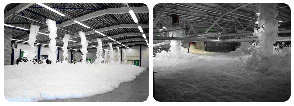 Устройства этого типа чаще всего используют на объектах, где находятся горючие жидкости и быстро воспламеняющиеся составы, нефтепродукты. Они подразделяются на дренчерные и спринклерные системы пожаротушения и в конструктивном плане весьма сходи с водяными установками. Отличие их состоит только в наличии резервуара. При этом все компоненты огнетушащего вещества хранятся отдельно.