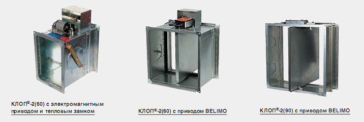 Сегодня можно купить клапаны Клоп, отличающиеся по огнестойкости. Причем каждый из видов может быть, как огнезадерживающим, так и использоваться для удаления дыма.