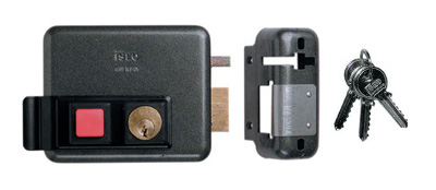 Модель для деревянных дверей – электромеханический замок ISEO 5213-10. Его открывание осуществляется подачей импульса. При этом снаружи управление механизмом осуществляется ключом, а изнутри – кнопкой. Причем последняя может блокироваться карточкой.