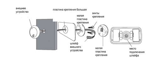 - Наружная, в нее входят, датчик движения, звонок, миниатюрная видеокамера.