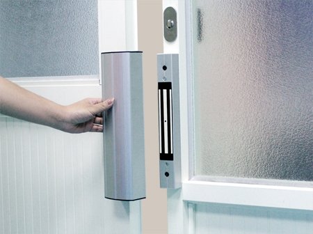 Электромагнитная модель представляет собой пару магнитов, которые не дают двери открыться. Недостаток очевиден – при падении напряжения его он отключается и не обеспечивает должной надежности.